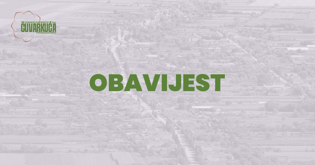 Poštovani stanovnici Općine Viljevo! Kako u narednih nekoliko dana kreće izgradnja sustava sanitarne odvodnje aglomeracije Viljevo (kanalizacije), obavještavamo vas kako će u ulicama Braće Radića i Kardinala Alojzija Stepinca doći do uklanjanja kompletne hortikulture (drveće, grmovi,…), koje će u narednih nekoliko dana izvoditi KG Čuvarkuća d.o.o. Isto tako vas obavještavamo da će Općina Viljevo u […]